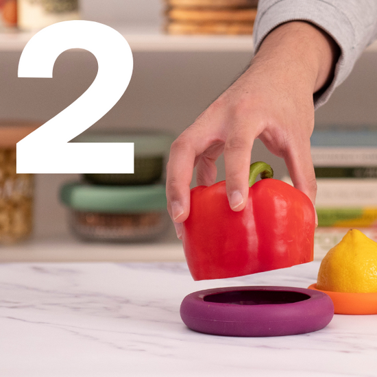 The best way to store cut produce is to protect the exposed surface from air. Food Huggers fold in gently as you press in your leftovers, creating a snug seal that helps slow browning and drying—without covering the entire fruit or vegetable.