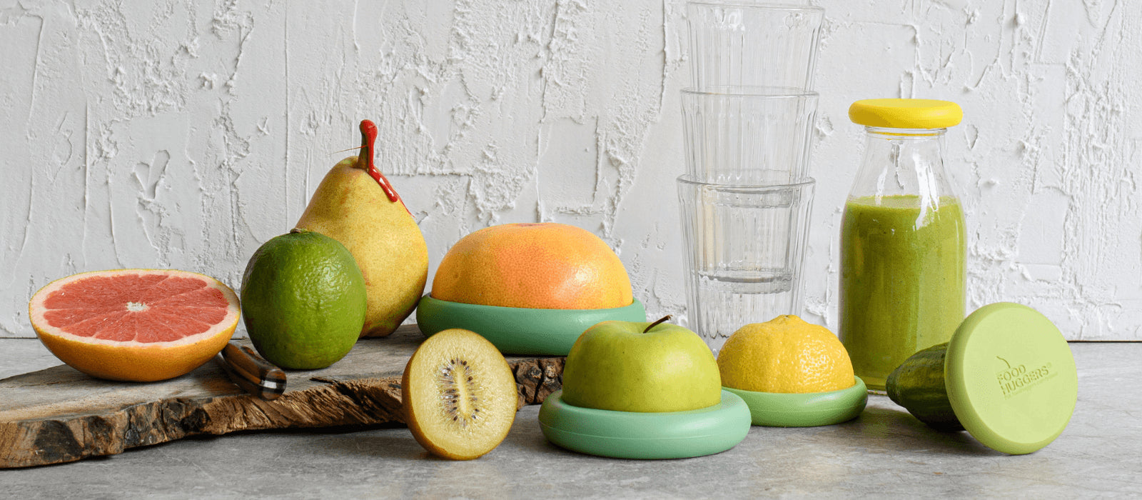 Food Huggers help reduce food waste by keeping cut fruits and vegetables fresh longer. They seal the exposed edge of produce—where spoilage starts—while leaving the peel uncovered. The peel is nature’s built-in protection, designed to regulate moisture and freshness. We simply protect the vulnerable part.
