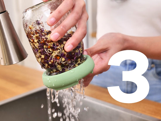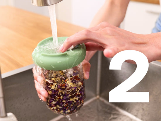 Each Sprout Hugger set comes with two silicone parts. A draining lid that fits over the opening of your jar, and a reservoir that catches any drips of water so that your counter stays clean and dry.